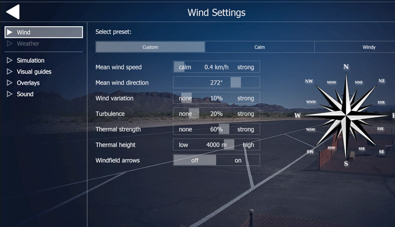 Zusätzliche Darstellungen wie das Windfeld mit Thermik können in diesem Menü extra an- und abgeschaltet werden.
